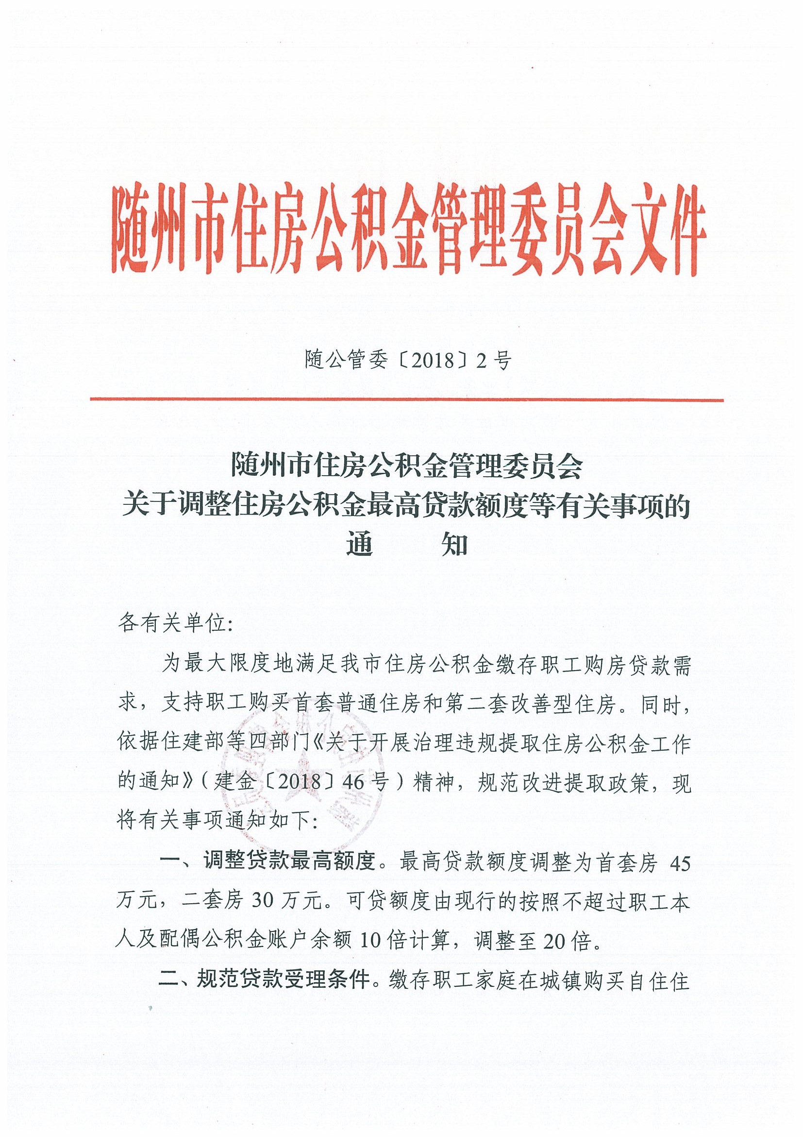 随州市住房公积金管理委员关于调整住房公积金最高贷款额度等有关事项的通知