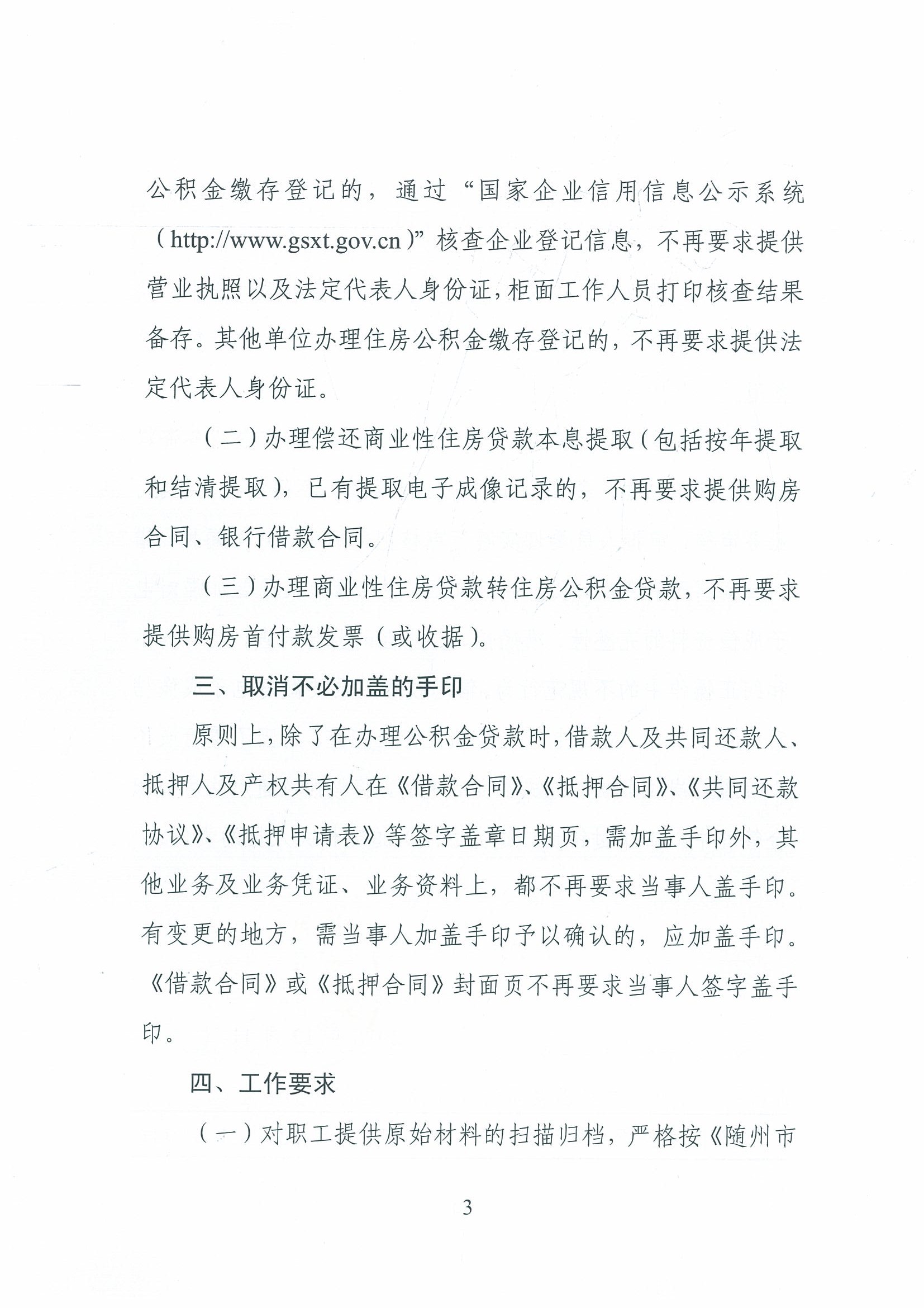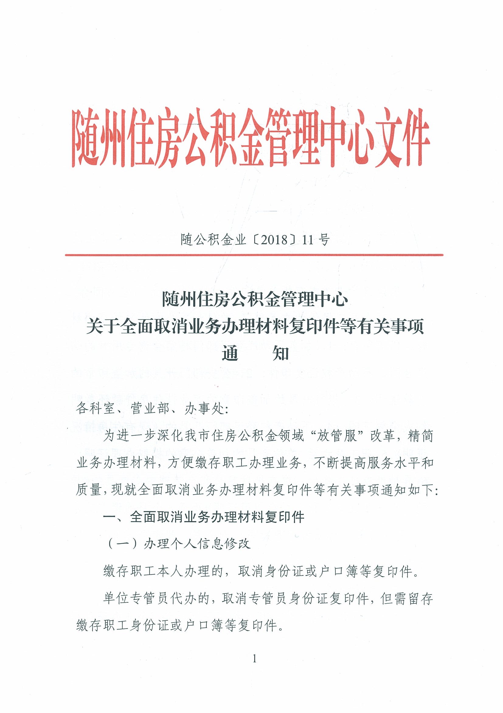 随州住房公积金管理中心关于全面取消业务办理材料复印件等有关事项通知