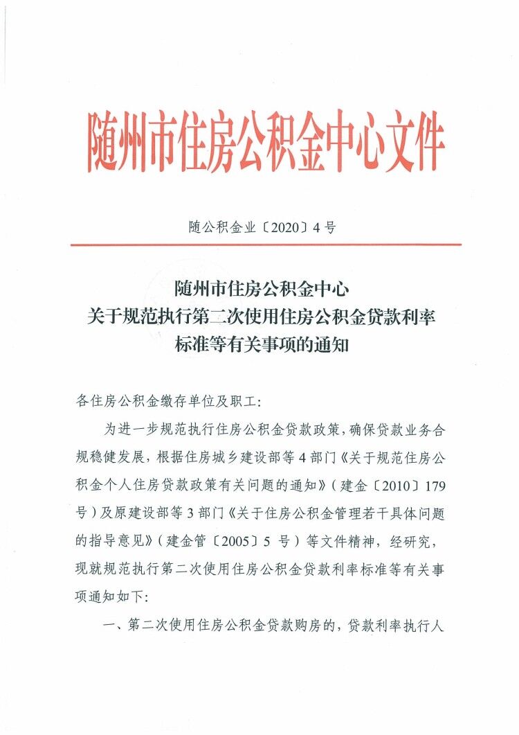 随州市住房公积金中心关于规范执行第二次使用住房公积金贷款利率标准等有关事项的通知