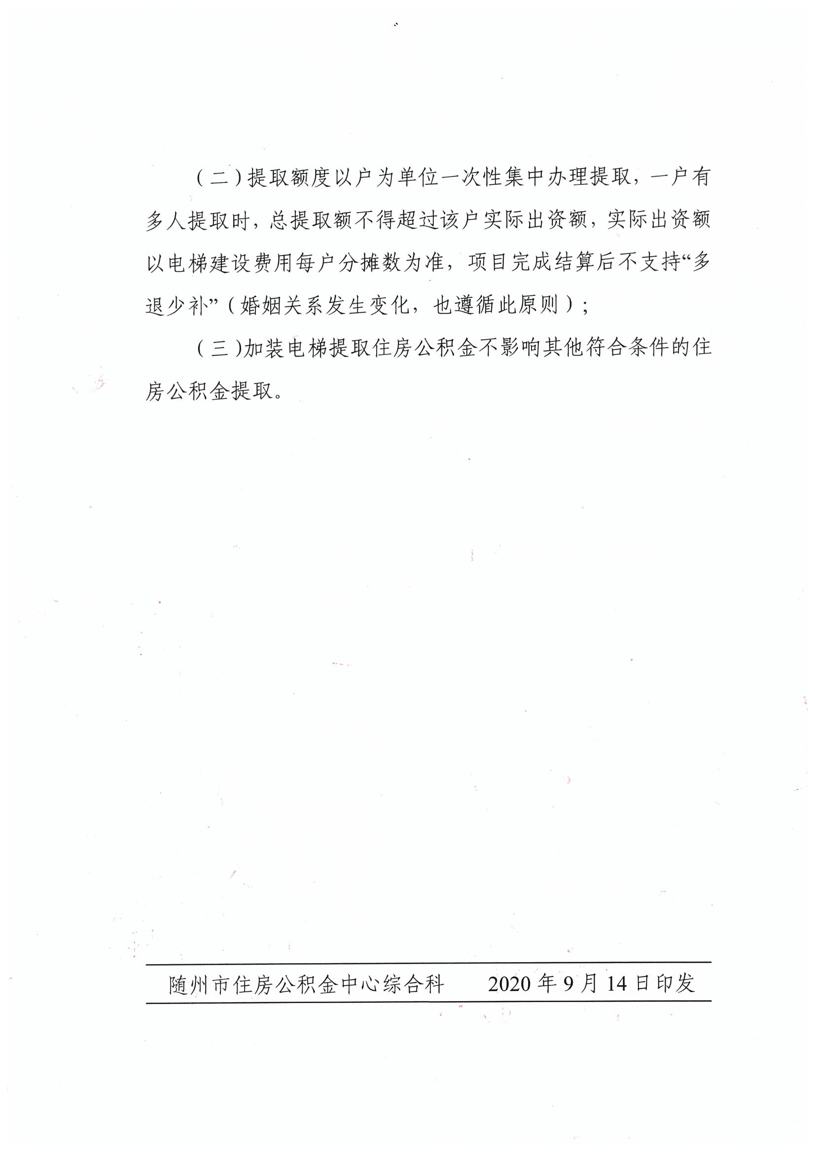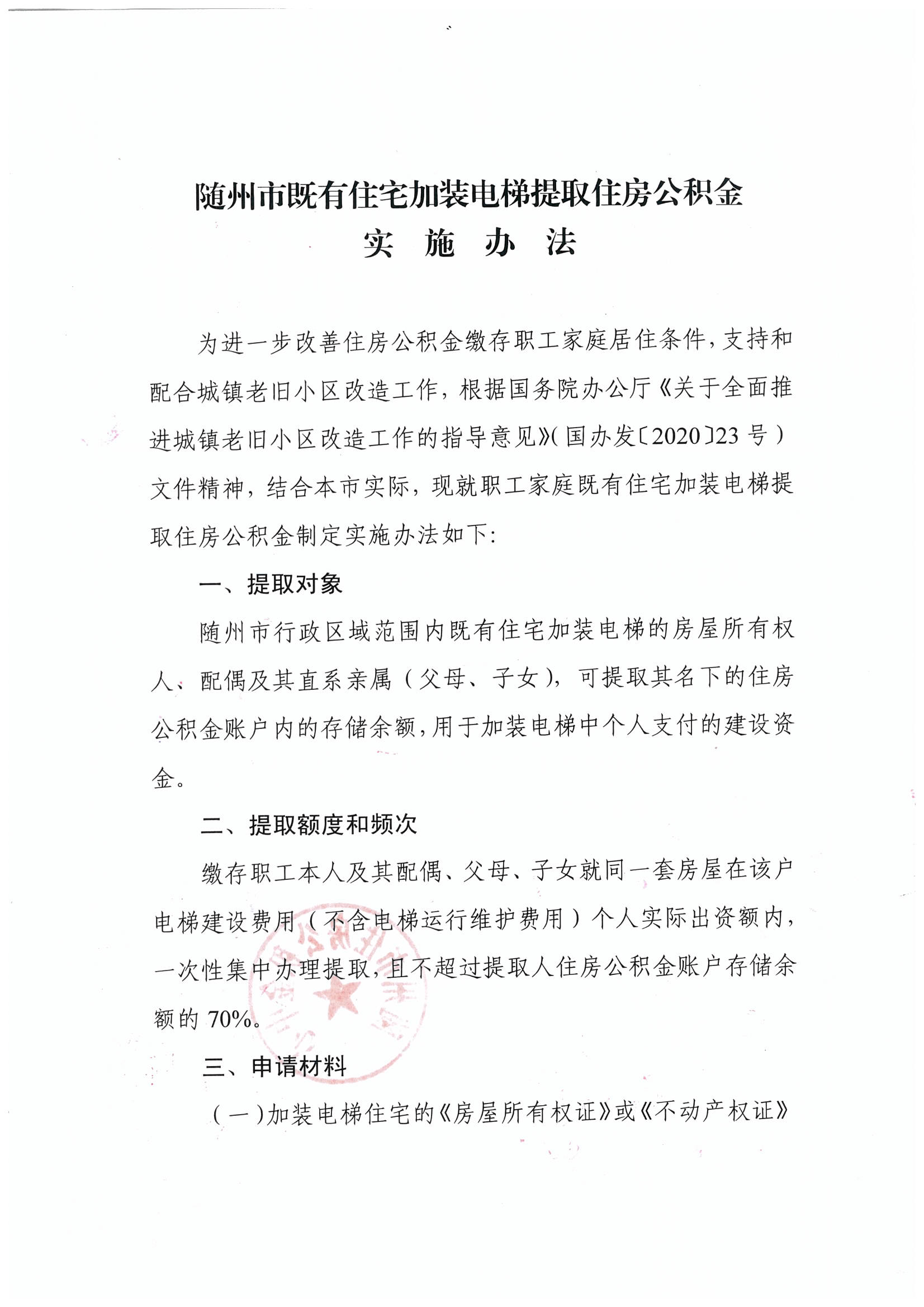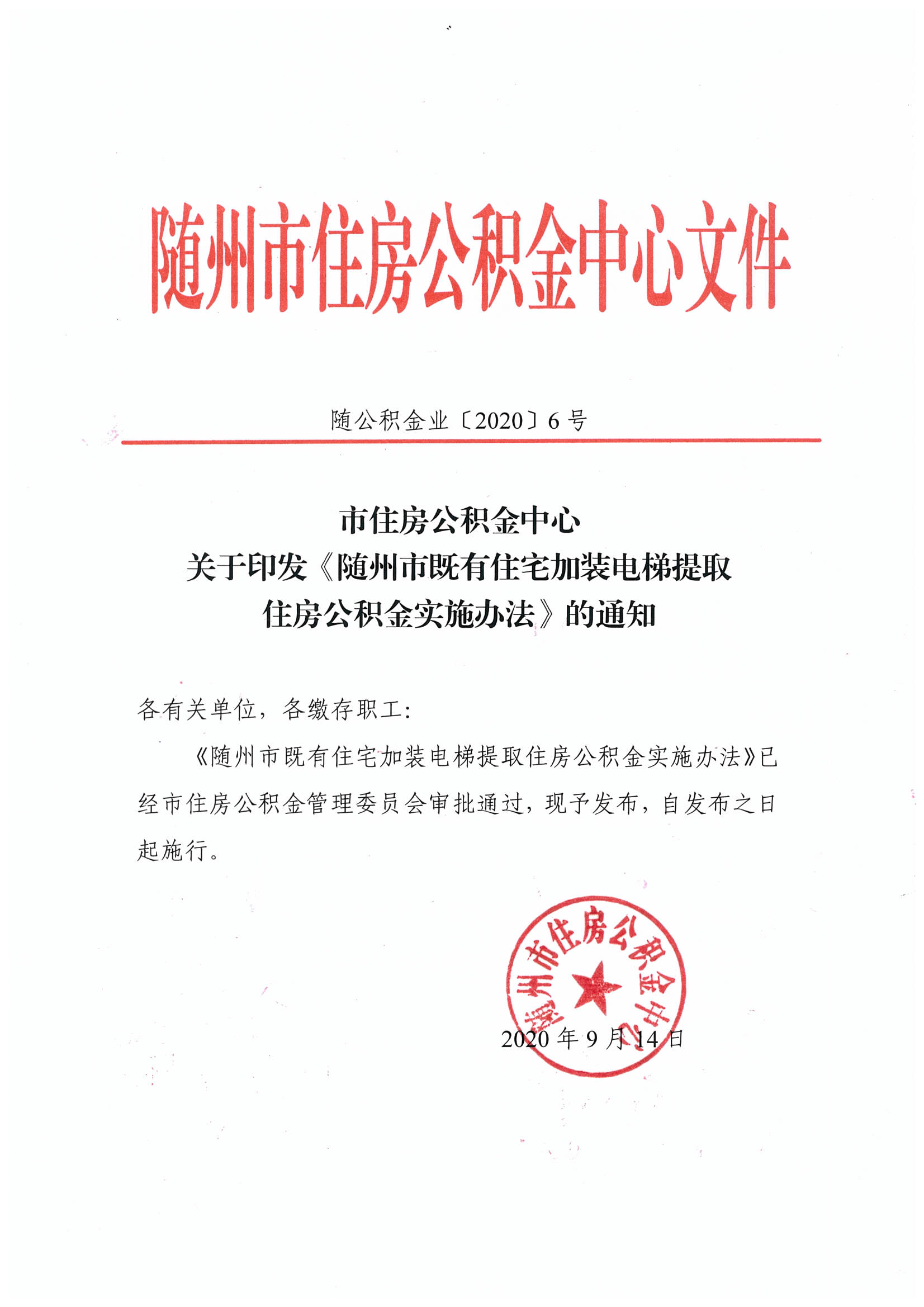 市住房公积金中心关于印发《随州市既有住宅加装电梯提取住房公积金实施办法》的通知