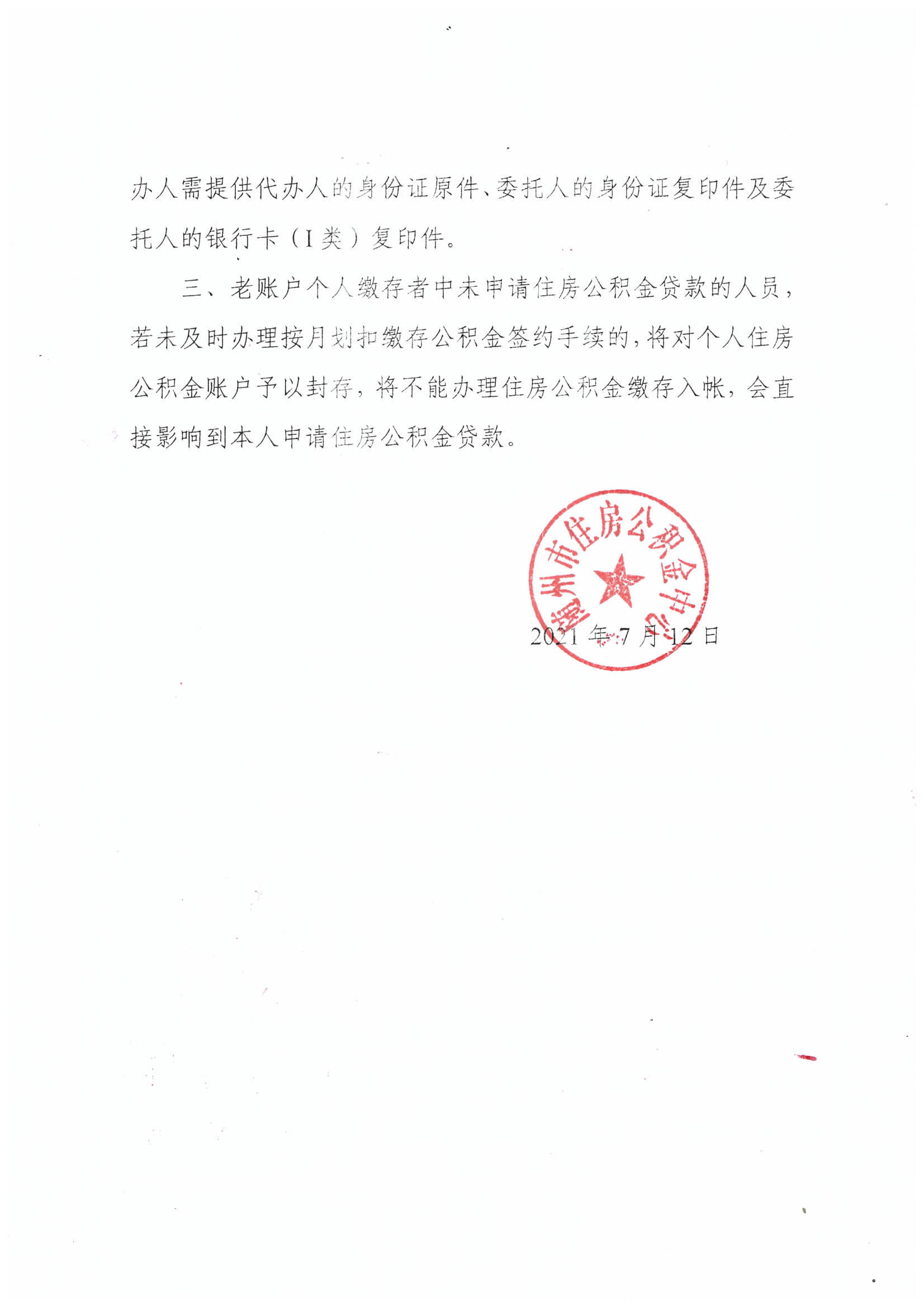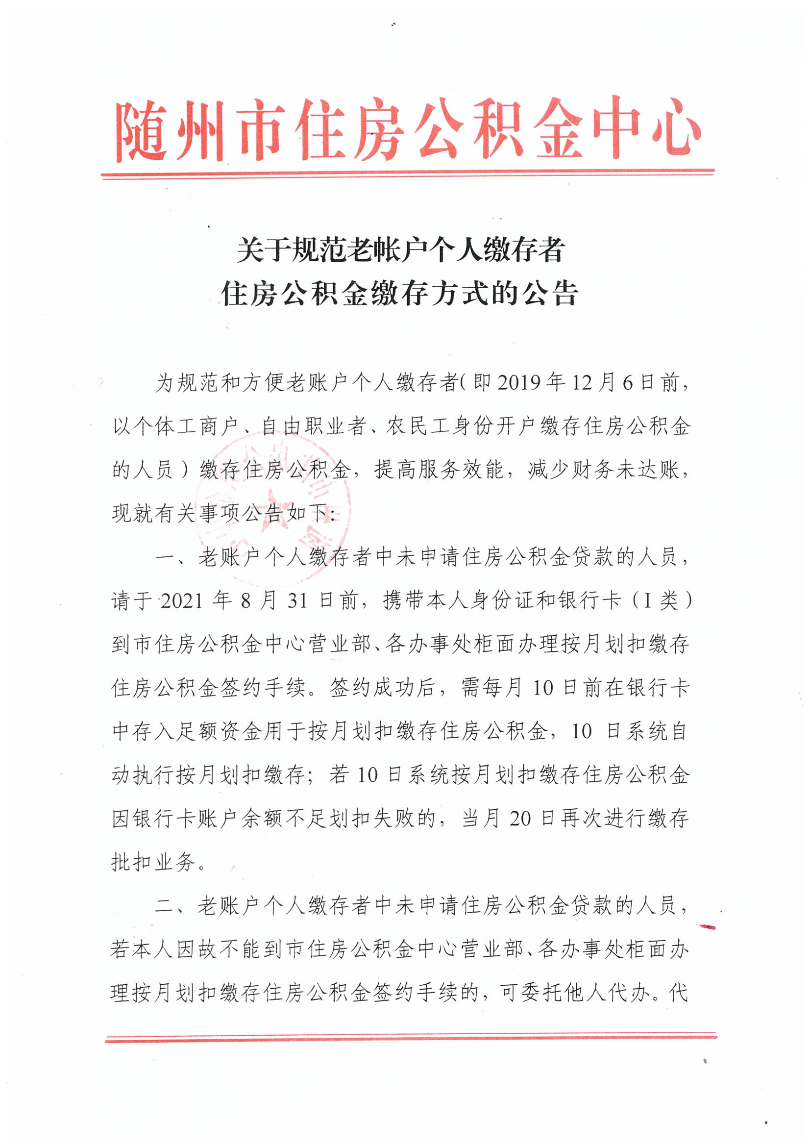 关于规范老账户个人缴存者住房公积金缴存方式的公告